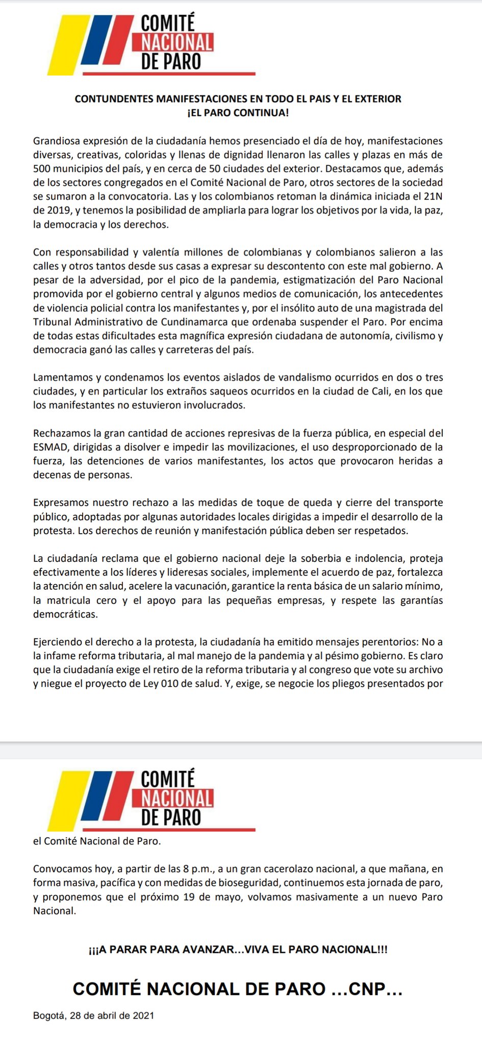 Central Unitaria De Trabajadores On Twitter Contundentes Manifestaciones En Todo El Pais Y El Exterior El Paro Continua Comunicado Del Comite Nacional De Paro Paronacional28a Paronacional Https T Co 7nu5dqekmn