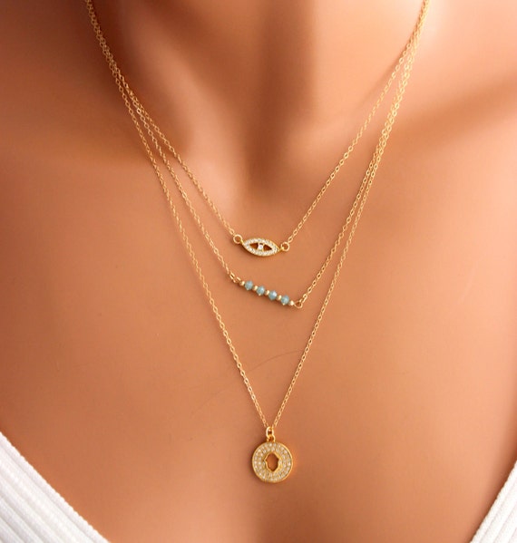 Evil Eye Multi Strand Necklace Hamsa By Divinitycollection On Etsy Joyas